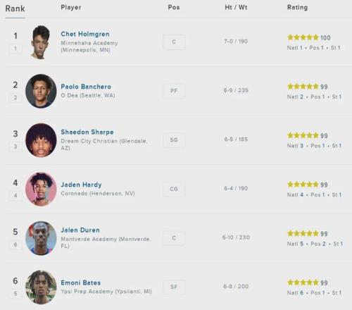 谢顿-夏普出生于2003年5月30日,比安芬尼-西蒙斯小4岁。夏普身高1米96,臂展2米12,垂直起跳高度达到1米24!2021年他决定跳过高四,加盟肯塔基大学。即便是跳级之后,夏普依然高居全美第三,仅次于霍姆格伦和班凯罗!