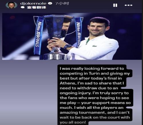 德约科维奇自宣退出年终总决赛,穆塞蒂递补获得参赛资格