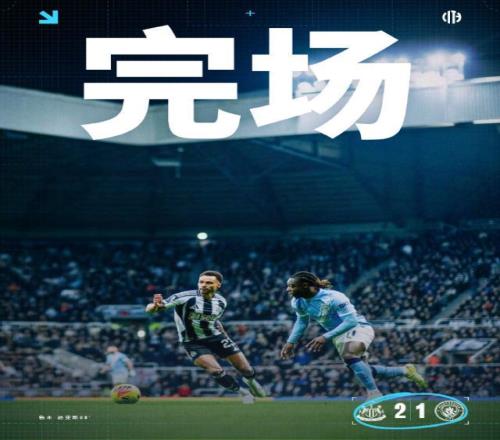 全场比赛结束,曼城客场1-2不敌纽卡斯尔联。