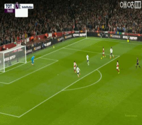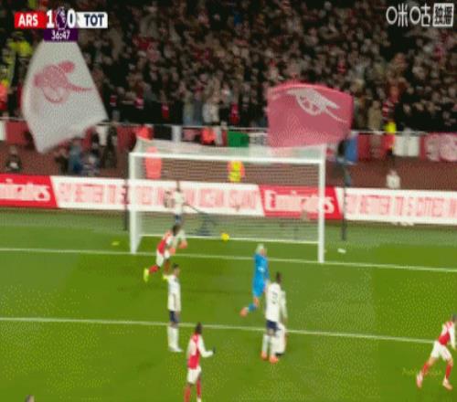 第36分钟,接梅里诺传球后,特罗萨德潇洒转身射门得手,阿森纳1-0领先!