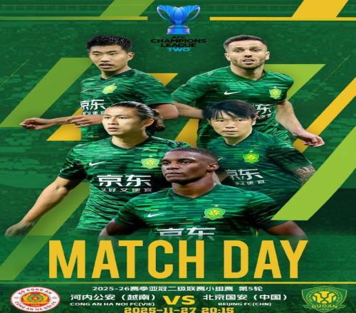 北京时间11月27日20点15分,中超第24轮一场焦点战打响,亚冠二级联赛E组第5轮一场焦点战打响。北京国安做客挑战越南球队河内公安队,而本场比赛双方的首发阵容也已经出炉。