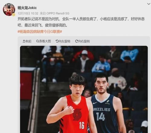 在大洋彼岸的美国,也有类似的情况,仅就开拓者队内都有不少球员出现生病的情况,导致非战斗减员。