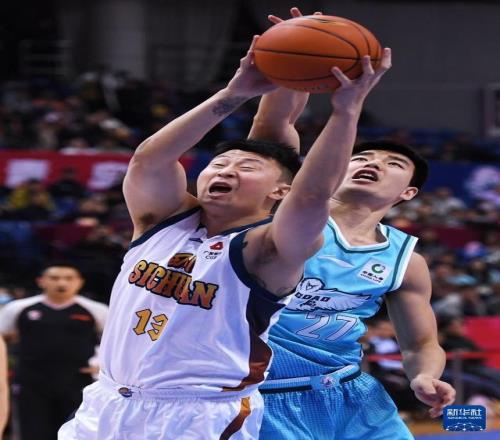 12月15日,四川丰谷酒业队球员段睿骐(右一)在比赛中上篮。新华社记者 李紫恒 摄