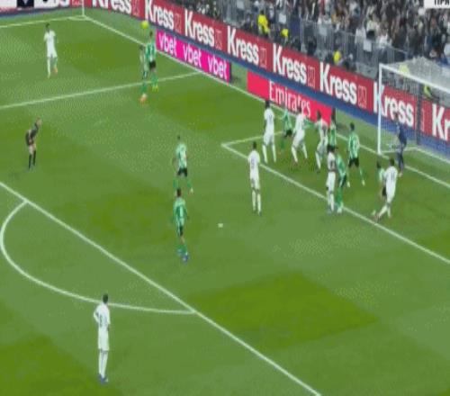 罗德里戈角球传中,落点恰到好处,劳尔-阿森西奥头槌破门,直挂球门右上角,3-0!