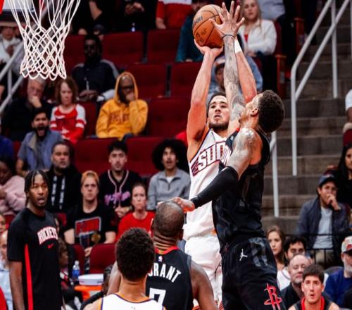 纵观全场比赛,火箭有三个问题,已经到了不得不解决的地步。第一,关键时刻打得是真乱!就以最后6分钟火箭领先7分为例,杜兰特勉强出手三不沾,阿门急停中距离也没有,此后阿门开球失误,伊森底角三分也不中,拿上霍勒迪,对球队节奏并没有太大提升,确实都在乱打!火箭太需要一个控球人了,从阿门到杜兰特,包括谢泼德,都不是这个类型!第二,杜兰特打得明显有些急躁。面对老东家,面对昔日的搭档布克,杜兰特一直非常急于证明自己。