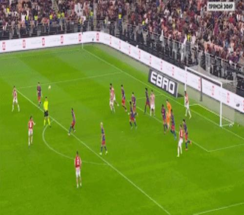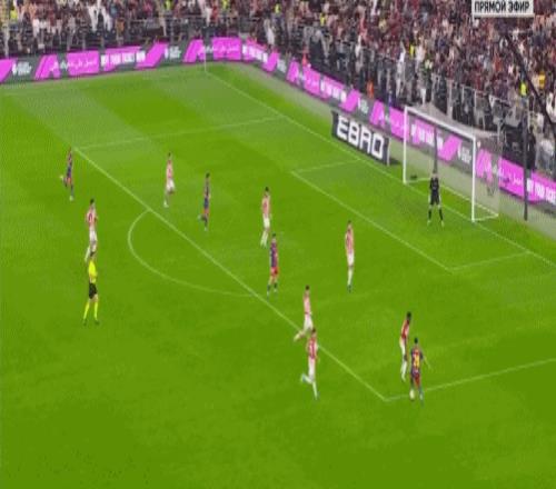 第5分钟,拉菲尼亚过掉乌奈-西蒙后传中,巴尔德吉没有顶到球