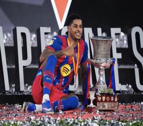北京时间1月12日,西班牙超级杯决赛,巴萨3-2战胜皇马夺冠。赛后,巴萨球员拉什福德更新社媒庆祝夺冠。