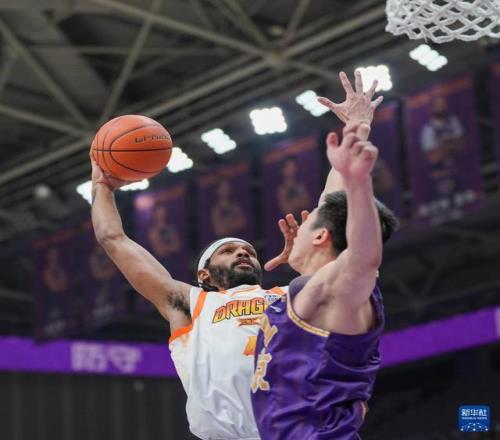 1月15日,江苏肯帝亚队球员亨特(左)在比赛中进攻。新华社记者 谢晗 摄