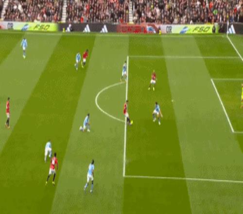 第10分钟,罗德里分球左路,多库变向突破,达洛特踹到对手的膝盖,但裁判手下留情,仅出示黄牌警告,曼联逃过红牌。