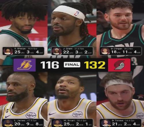 东契奇里夫斯艾顿全部休战,斯玛特中途伤退,超级残阵的湖人客场面对开拓者毫无还手之力,最终116-132大比分落败。