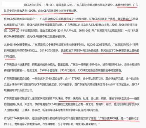 随着广东队取得队史1000胜,CBA公司也是在第一时间发文祝贺广东队!恭喜广东队成为CBA联赛历史上首支千胜球队。
